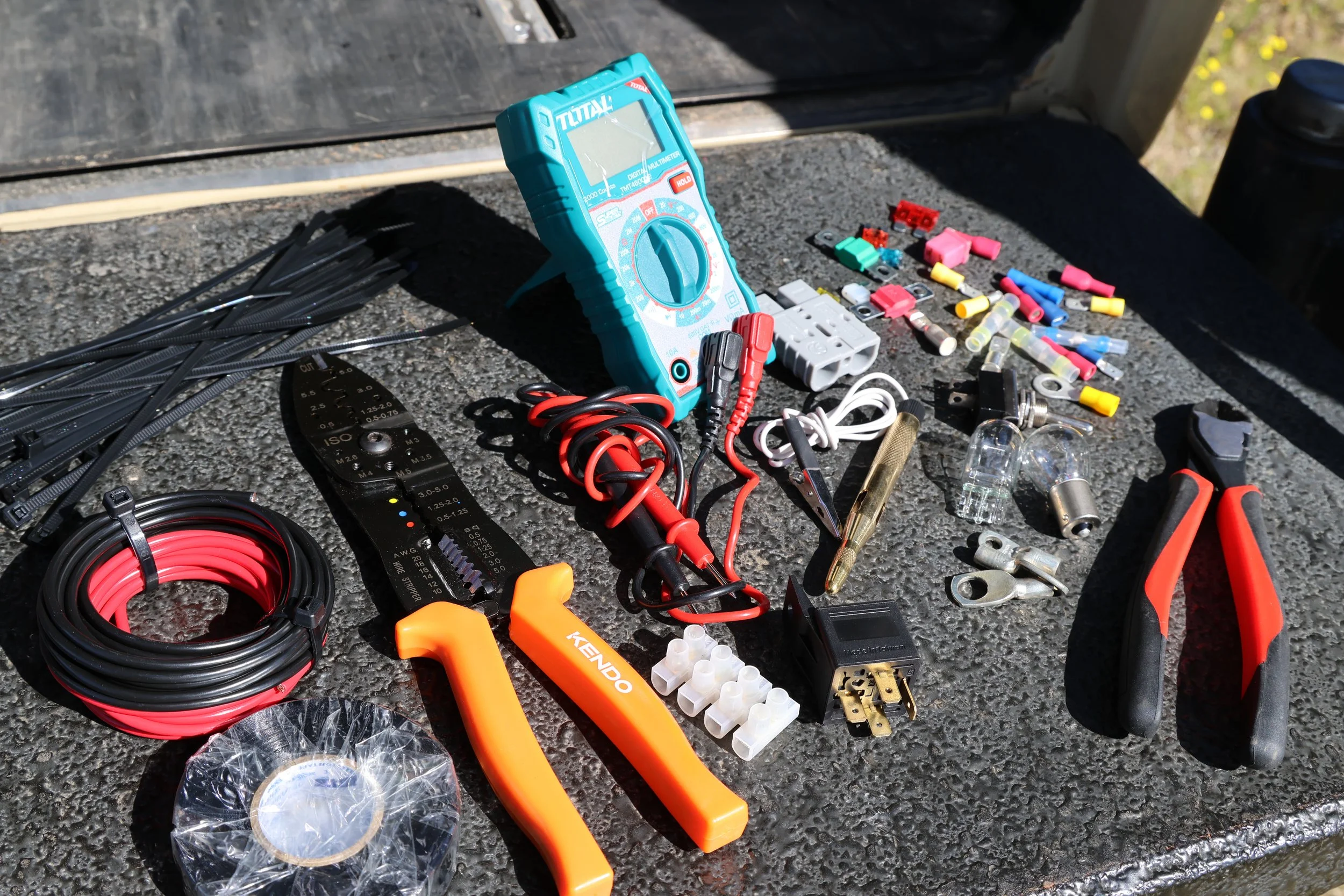 Electrics are part of any expedition. Being able to find problems and fix them often means the difference between a cold drink and spoiled perishables. You don’t need a lot, but it’s critical.