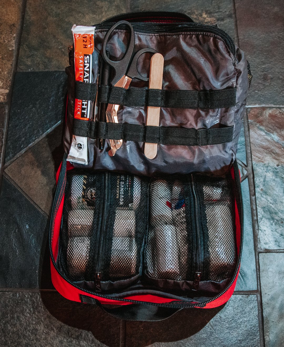 It doesn’t have everything to be seen as a Trauma kit dealing with multiple injuries or casualties. Rather, it provides just enough to not take up any significant space inside a vehicle, while still providing you with heavy-duty items to deal with a serious situation where you can’t get out of the vehicle.